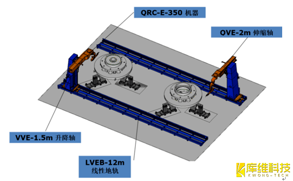 根據(jù)驅(qū)動(dòng)箱焊接結(jié)構(gòu)尺寸特點(diǎn)和要求分析,焊接工作站為雙機(jī)器人雙工位機(jī)器人焊接工作站,兩條平行的12m有效行程地面軌道上各安裝有一個(gè)三維伸縮臂,每套伸縮臂上配有一套七軸弧焊機(jī)器人,兩機(jī)器人可獨(dú)立工作或者一同工作,如圖2所示。弧焊機(jī)器人采用QRC-E-350型號(hào)關(guān)節(jié)型手臂機(jī)器人,其所有軸都有一個(gè)極大的旋轉(zhuǎn)范圍,使其具有非常大的靈巧性能和工作范圍。機(jī)器人的手臂設(shè)計(jì)細(xì)長(zhǎng)而緊湊,且各軸的動(dòng)態(tài)性能高,保證了優(yōu)良的焊接精度、速度和可重復(fù)性。