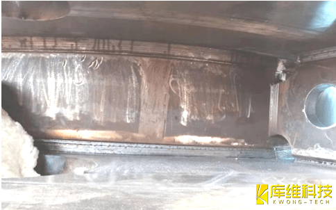 驅(qū)動(dòng)箱零件組對(duì)拼點(diǎn)后,進(jìn)行定位焊接,由于焊接機(jī)器人正式焊接時(shí)不能有效識(shí)別定位焊縫,若定位焊縫尺寸較大,焊接容易產(chǎn)生缺欠。因此,在正式焊接前需要對(duì)定位焊縫兩端10~15mm打進(jìn)行磨處理,圓滑過(guò)渡,保證能夠與正式焊縫良好結(jié)合。定位焊縫要求焊透,不允許存在裂紋、未熔合、氣孔等缺欠。
