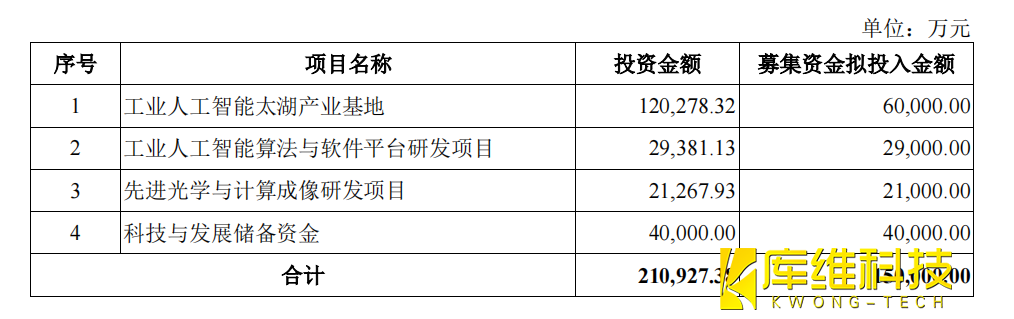 凌云光本次發(fā)行募集資金將投入以下四個項目:“工業(yè)人工智能太湖產(chǎn)業(yè)基地項目”、“