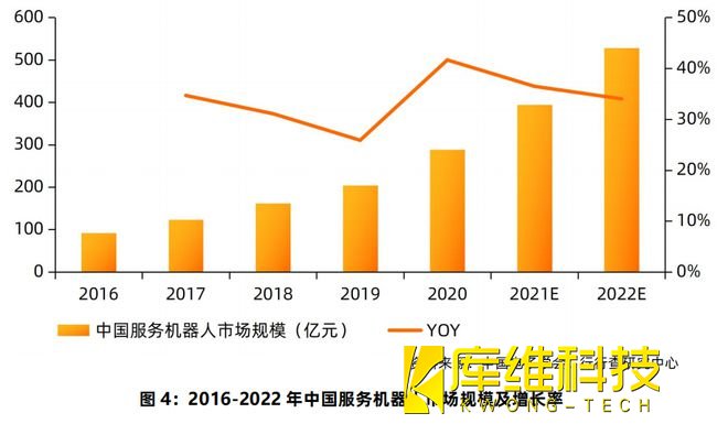2021年我國服務(wù)機(jī)器人市場規(guī)模預(yù)計(jì)達(dá)到393.3億元,2016-2021年的年均復(fù)合增速達(dá)34%,市場規(guī)模總體增速高于工業(yè)機(jī)器人。近年來,服務(wù)型機(jī)器人產(chǎn)品的消費(fèi)需求不斷升級、消費(fèi)群體日益擴(kuò)大,C端市場應(yīng)用滲透率不斷提升,預(yù)計(jì)2022年我國服務(wù)機(jī)器人的市場規(guī)模將達(dá)到500-550億元。