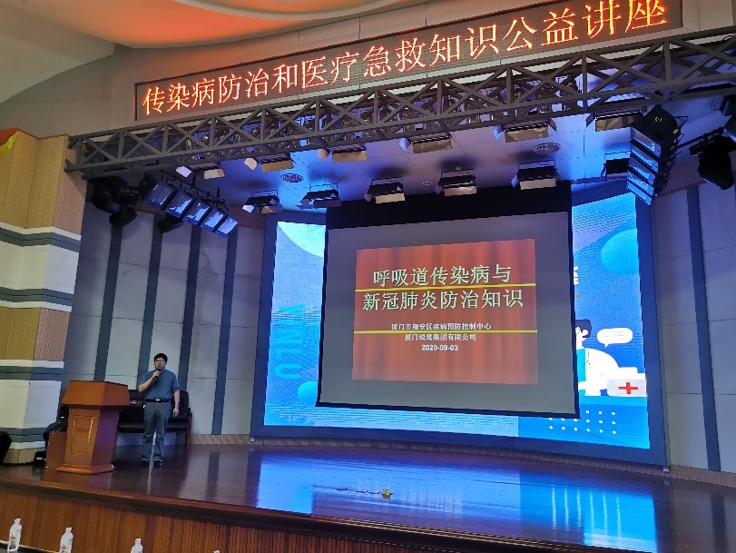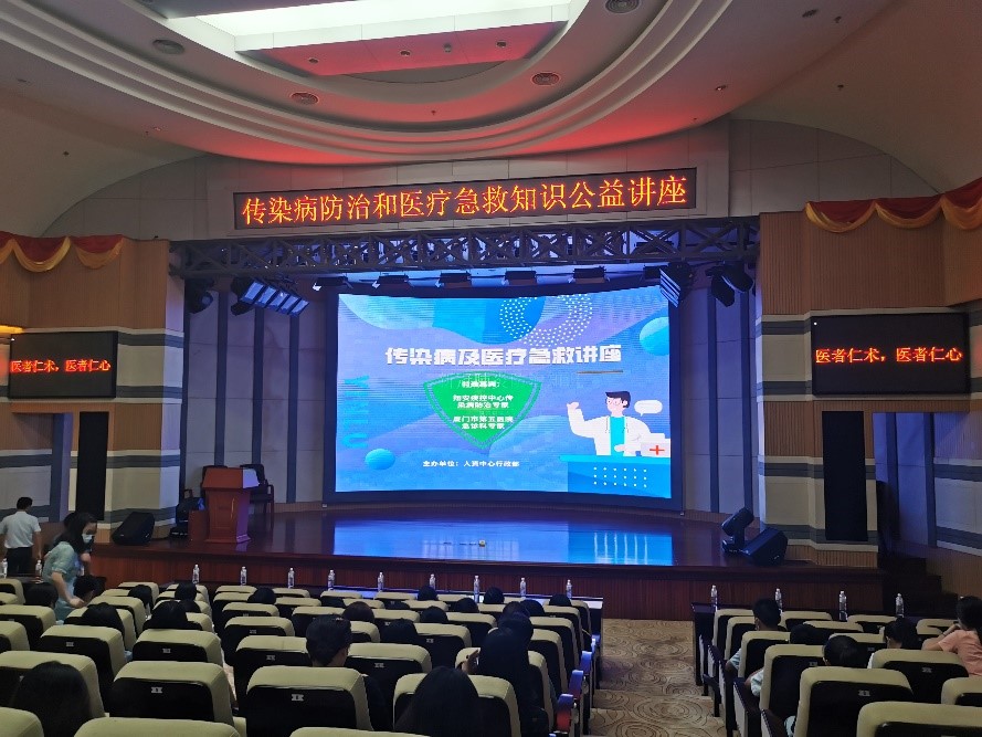 講座于9月2日下午在總部3F大禮堂進行,翔安區疾控中心傳染病防治專家葉醫師、廈門市第五醫院急診科張護士及其團隊為大家授課。