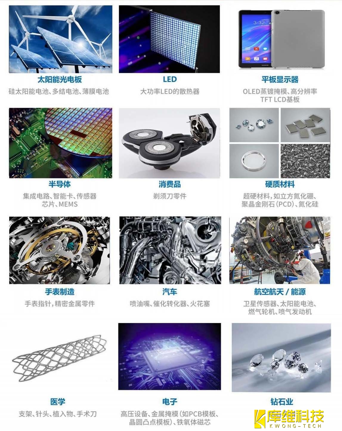 航空航天/能源:衛(wèi)星傳感器、太陽能電池燃?xì)廨啓C(jī)、噴氣發(fā)動(dòng)機(jī)