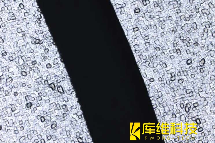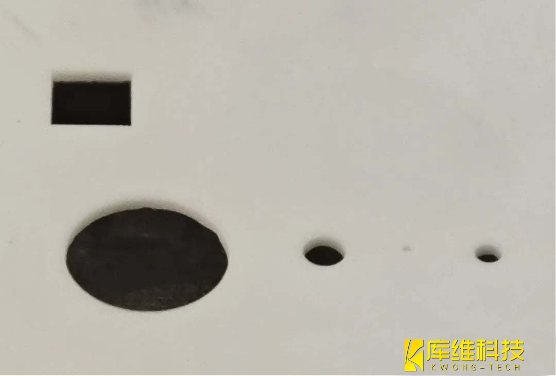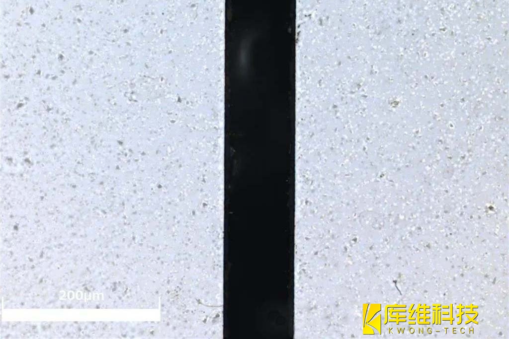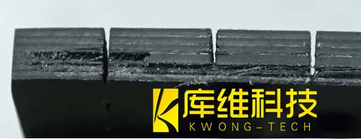 如圖所示,硬質(zhì)PCB板經(jīng)過(guò)加工后,斷面平整,無(wú)明顯熱影響區(qū)(成功解決了傳統(tǒng)激光加工易導(dǎo)致產(chǎn)品發(fā)黑的問(wèn)題)。