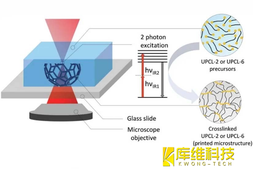 雙光子聚合(2PP)是一種微納3D打印技術(shù),它通過(guò)飛秒脈沖激光選擇性固化感光樹(shù)脂,類(lèi)似于光固化快速成型,但2PP 3D打印技術(shù)能以幾百納米的分辨率生產(chǎn)復(fù)雜的三維(3D)結(jié)構(gòu),精度遠(yuǎn)高于傳統(tǒng)光固化成型技術(shù)。奧地利學(xué)者Aleksandr Ovsianikov就曾使用雙光子聚合技術(shù)設(shè)計(jì)并合成了一種含有六官能氨基甲酸酯基遙爪聚己內(nèi)酯(PCL)的材料,這種材料能滿足生物醫(yī)學(xué)微支架制造的需求,在組織工程領(lǐng)域具有巨大的應(yīng)用潛力。