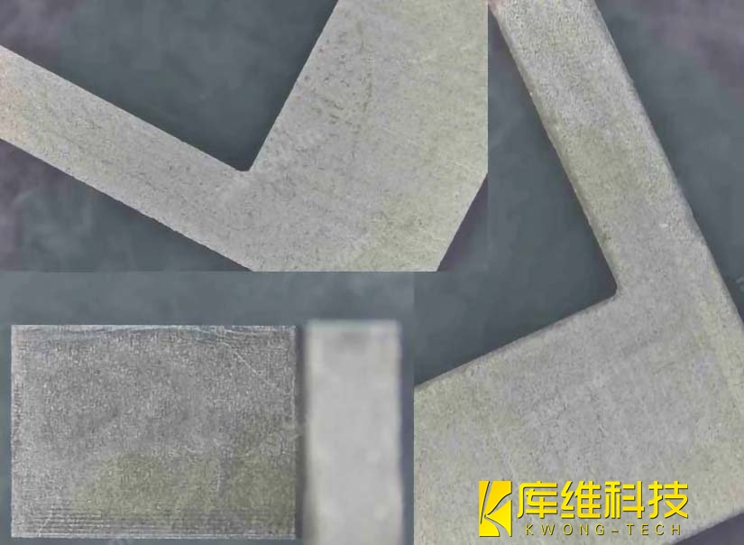 在加工釹鐵硼永磁材料時(shí),水導(dǎo)激光切割技術(shù)展現(xiàn)出了顯著的優(yōu)勢(shì)。以材料牌號(hào)為 45SH、規(guī)格為 34mm x 22mm x 8mm 的試樣加工為例,其加工尺寸與中差尺寸的偏差值能夠嚴(yán)格控制在 ±0.003mm 以?xún)?nèi),充分滿(mǎn)足了高精度的加工要求。通過(guò)增加外部水源沖刷,材料表面殘留的熔渣顯著減少。經(jīng)過(guò)細(xì)砂紙的簡(jiǎn)單打磨,試樣的表面粗糙度可以達(dá)到 Ra0.3 左右,從而獲得高質(zhì)量的表面加工效果。