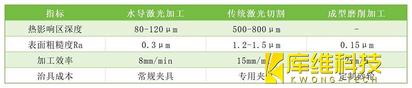 實(shí)驗(yàn)顯示,水導(dǎo)激光在保證表面質(zhì)量的前提下,綜合加工成本較磨削工藝降低62%,產(chǎn)品交付周期縮短75%。特別在加工異形氣隙槽、微型定位孔等精密結(jié)構(gòu)時(shí),展現(xiàn)出獨(dú)特的技術(shù)適應(yīng)性。