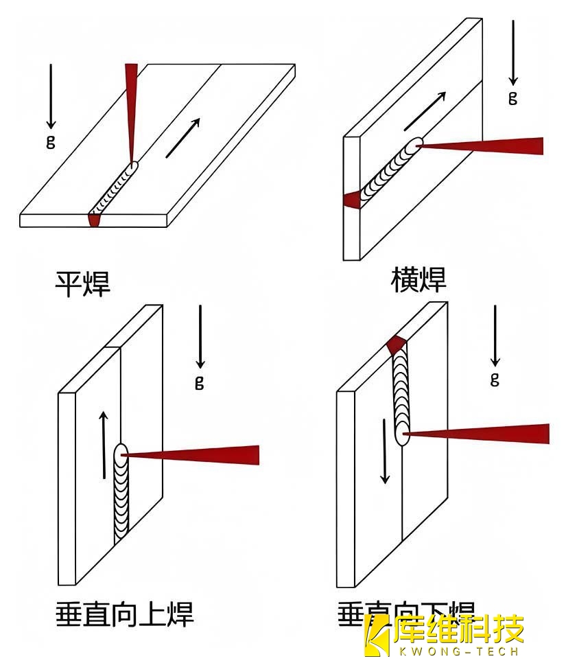 激光焊接憑借高精度、高效率的優(yōu)勢,已成為現(xiàn)代制造業(yè)的核心工藝。焊接質(zhì)量受多種因素制約,其中焊接位置作為關(guān)鍵變量,通過改變?nèi)鄢亓鲃印醾鲗?dǎo)及凝固行為,直接影響焊縫成形、氣孔缺陷和力學(xué)性能。本文將系統(tǒng)介紹平焊、橫焊、垂直向上焊、垂直向下焊四種位置的工藝特性,并探討優(yōu)化方向。
