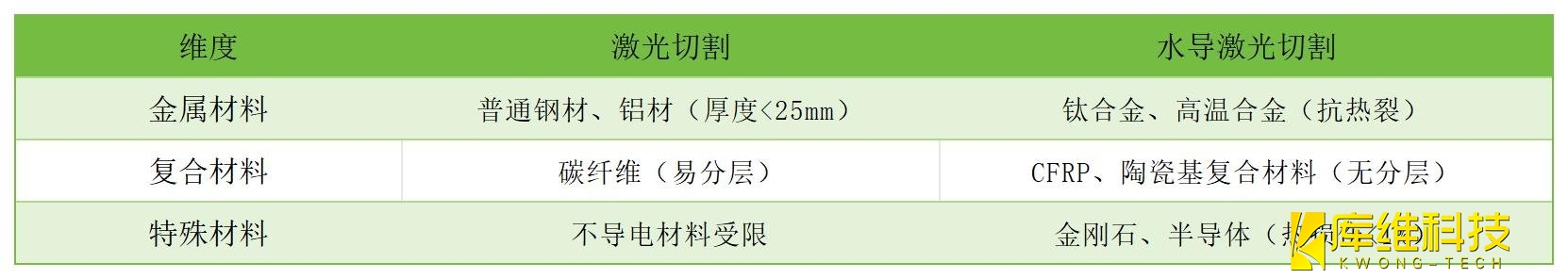 ??激光切割對(duì)導(dǎo)電金屬效率更高,但復(fù)合材料易產(chǎn)生分層;水導(dǎo)激光通過水流抑制熱應(yīng)力,可加工高硬度、熱敏感材料。