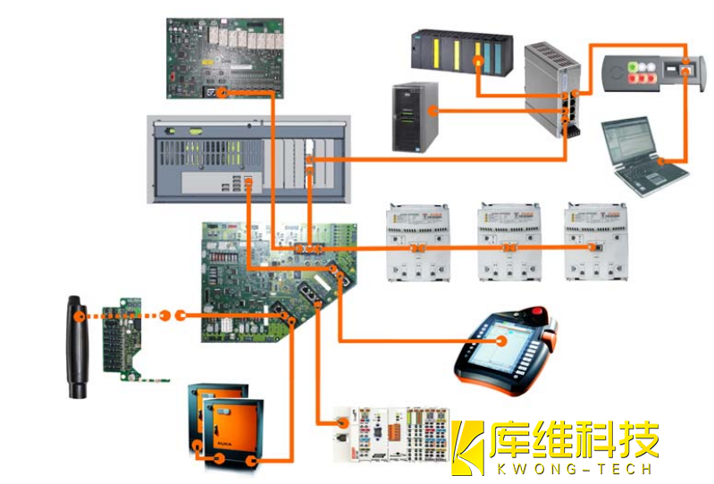 KR C4 控制系統(tǒng)內(nèi)具有各種基于以太網(wǎng)的總線系統(tǒng)。
