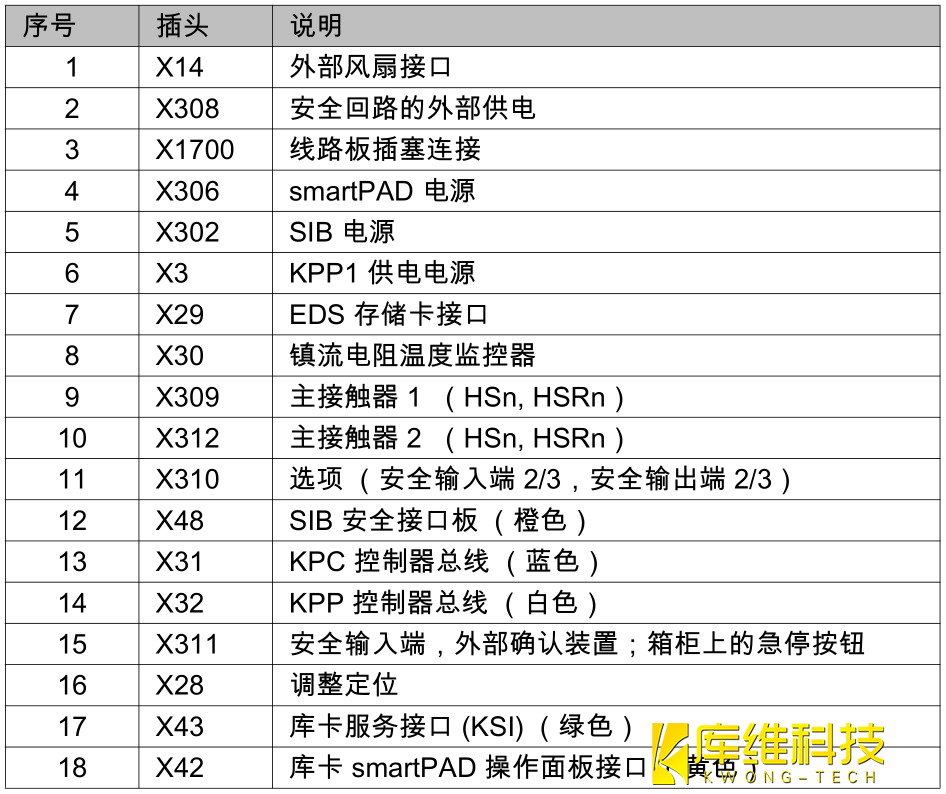 控制柜 (CCU)包含兩塊電路板 (CIB 控制柜接口板和 PMB 電源管理板),是機器人控制系統(tǒng)所有組件的配電裝置和通訊接口. 所有數據通過內部通訊傳輸給控制系統(tǒng),并在那里繼續(xù)處理. 當電源斷電時,