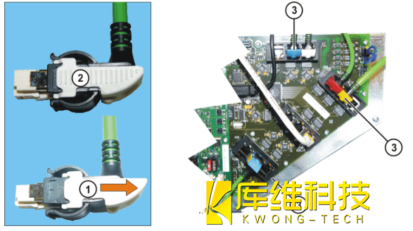 1. 關閉控制系統(tǒng)并采取確安措施防止未經授權的重啟2. 將數據線插頭解鎖拔出控制柜 (CCU ) 上的所有接線解鎖數據線插頭如下圖