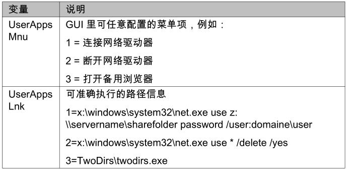 所有外部程序 (例如:TwoDirs)必須已存在于 U 盤里。