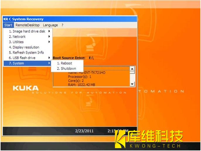 庫卡機器人操作步驟 在該項操作方式里,需要使用一個外置監(jiān)視器和顯卡。