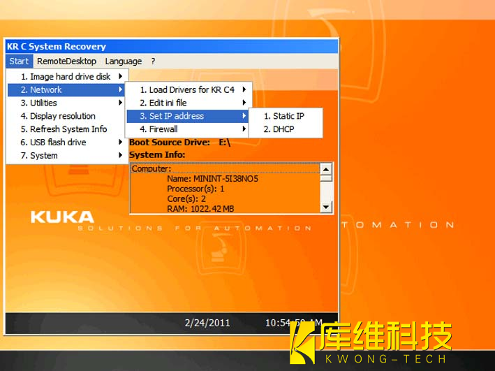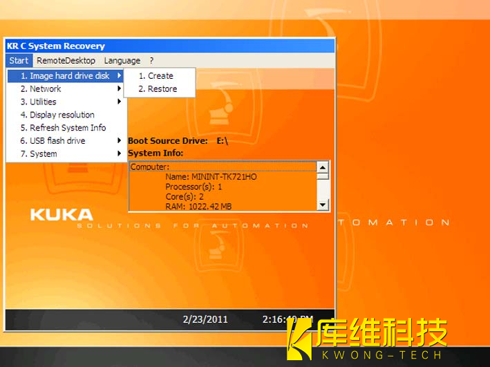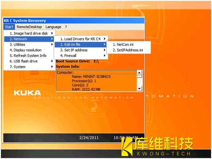 2. 插上具有起動功能的庫卡 U 盤,然后重啟工業(yè)機(jī)器人控制系統(tǒng)。