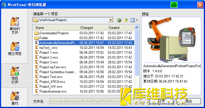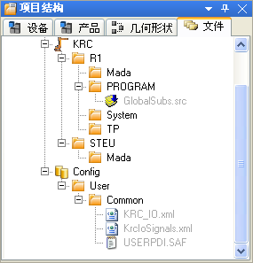 7. 從機器人控制系統(tǒng)傳輸?shù)?WorkVisual 的文件:黑色項目瀏覽器