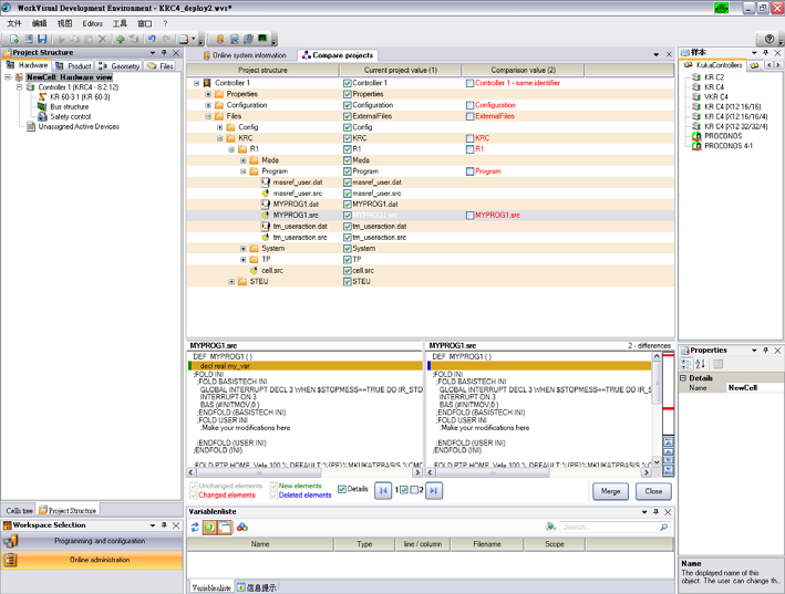2. 選擇需與當(dāng)前 WorkVisual 項(xiàng)目作比較的項(xiàng)目,例如實(shí)際機(jī)器人控制系統(tǒng)上的同名項(xiàng)目。