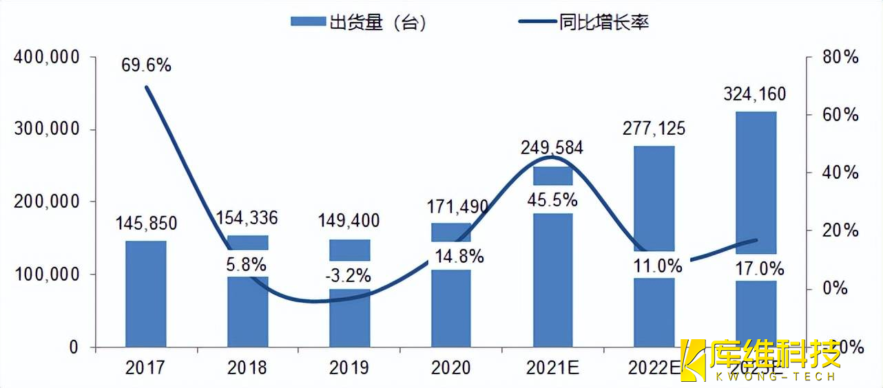 根據(jù)相關(guān)數(shù)據(jù)表明,2020年中國工業(yè)機(jī)器人市場出貨量為17.15萬臺,同比增長14.8%,預(yù)計2021年中國工業(yè)機(jī)器人市場出貨量將為24.96萬臺,同比增長45.5%。長遠(yuǎn)來看,中國工業(yè)機(jī)器人市場發(fā)展空間廣闊,行業(yè)需求也將穩(wěn)速增長,國產(chǎn)替代趨勢不改。