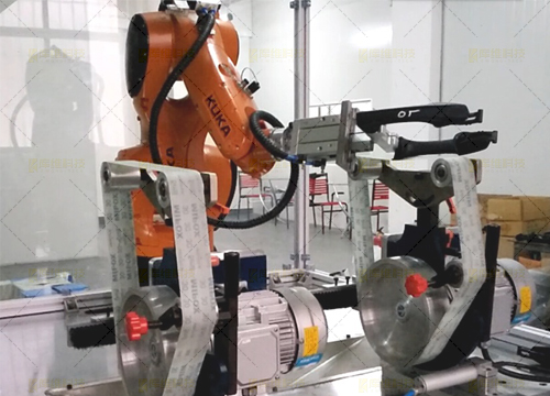 針對小型的五金件(如把手),利用機器人帶夾持工具對五金鑄件的毛刺飛邊的打磨和拋光而專門設計的產品。該單元主要由機器人及砂帶機和拋光機構成 ,轉臺進行變位協(xié)同及工件裝卸,全自動化完成產品的打磨拋光過程