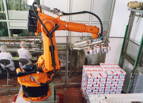 適用化工、建材、飼料、食品、飲料、啤酒、自動化物流等行業(yè),配以不同抓手,可實現(xiàn)在不同行業(yè)各種形狀的成品進(jìn)行裝箱和碼垛。